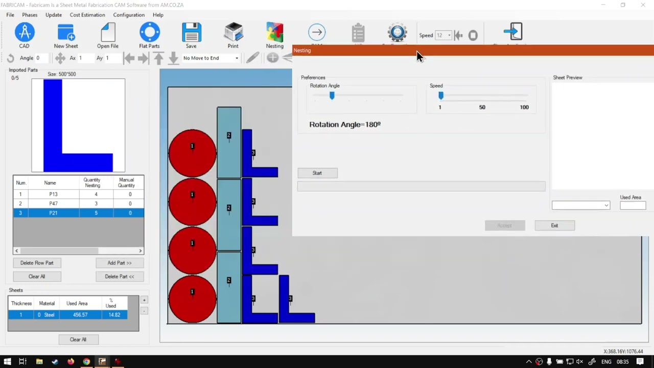 All right, guys, in today's video of fabric cam, we're gonna be looking at the next rotation or rotating shapes when you're nesting them. But before that, let's have a quick intro first, so today's video can be found on softwaretraining.co.za. We make sure it's easy to watch problem solving videos, and we also have daily updates. Otherwise, we're back into the programme here now, Like I mentioned today, we're gonna be looking at rotating or nesting shapes. Now this can be very handy if, like I mentioned before, let's say your canvas is very full and you need to fit in shapes in another way. Or if you just simply want your shapes rotated in a different manner, regardless of the space that users. So now, if we head into the actual nesting feature, you guys will notice we've got this first preference, which is rotation angle at the bottom. Here currently says no angle. I'll show irritation angle, no rotation. Zoom in here so you guys can have a better view of options now from the settings on top. Here we have a few different ones. I had to move this we can see at the bottom. It says 180 degree rotation. We have a 90 degree, 45 22 degree and a one degree now something to keep in mind with it. Like the one degree which is great. This thing will rotate it just about any angle you need. So it will by itself try. Find the best angle to fit that shape in now. Obviously no rotation. We know what that does in 180 on some shapes. Like if I had to put sideways here, like on these two shapes, we won't see any difference where with the actual L shape should be flipping it to the top and turn it perhaps into a seven. So let's just have a preview. It's gonna go no rotation. So we're gonna have the canvas as it is. And then let's go 100 and eight. And now we can see like these ones look like squares or rectangles. But as you can see that it's gone from L 27, where the rest or look the same. Once we start going to just grab this thing to 90 degree now, we should have perhaps some on the side as well, so I can see it. Does it, um, in any 90 degree angle? Then we can go to 45 which over a year can We're not seeing any difference, I think, cause it's fitting it very nicely. Same opportunity. These ones should become more apparent once we fill up this canvas and there's only a certain way this shape can fit. Then these, um, different rotations will become very handy. So, points, let's say one of these girls can only fit in this in a way like, uh, not quite like Tetris, but a bit more advanced. Then it will use that, uh, or this rotation to make it fit. And as you can notice here, the lower we set their rotation longer. It takes to apply those settings or find the right shapes. So it is ultimately trying to find, as you can see, there the best shape to save space. But yeah, otherwise, just a quick recap again. So we've got the rotation. We have 180. 90 sorry. 180 90 45 22 1 rotation. And this is pretty much gonna try fit the shape in as best as it can. Based on the rotation amount. You've said it to the degree amount and this is ultimately trying to save you cutting space so you can fit more into your actual cutting, uh, plate, which is nice in the long run that will save you costs and so forth. But otherwise yeah, that is it on rotations. I'm just gonna accept you so we can sort of see it here, live on our update and obviously all of these things you can do manually. But it takes way more time. So the programme just makes sure of it for you Otherwise, before we get to the next feature Here we go here to softwaretraining.co.za z. You guys will notice we've got a variety of different Softwares we do cover, and you can also isolate your search on the top, right? If you do not, however, find the training videos you're looking forward just simply to hear request the training video, filling the uniform. And then we'll do our best to try and make that for you. But otherwise thanks, guys, for watching and cheers