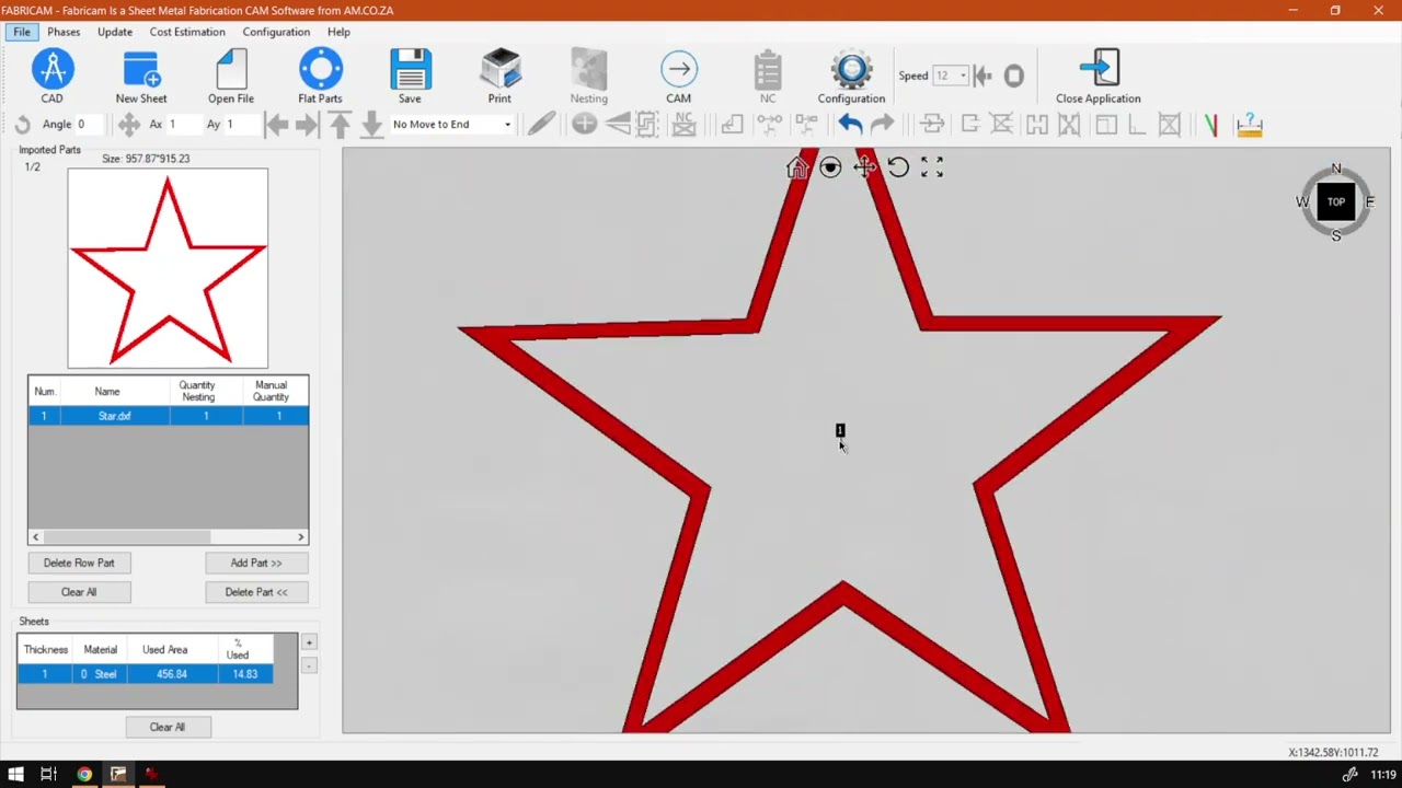 angle (1) application (1) art (1) cam (2) configuration (2) cost (1) cost estimation (1) die (1) end (1) estimation (1) fabric (2) fabrication (1) file (2) help (1) man (1) metal (1) move (1) move end (1) nesting (1) parts (1) pen (1) phases (1) posts (1) print (1) quart (1) save (1) sheet (2) software (1) update (1)