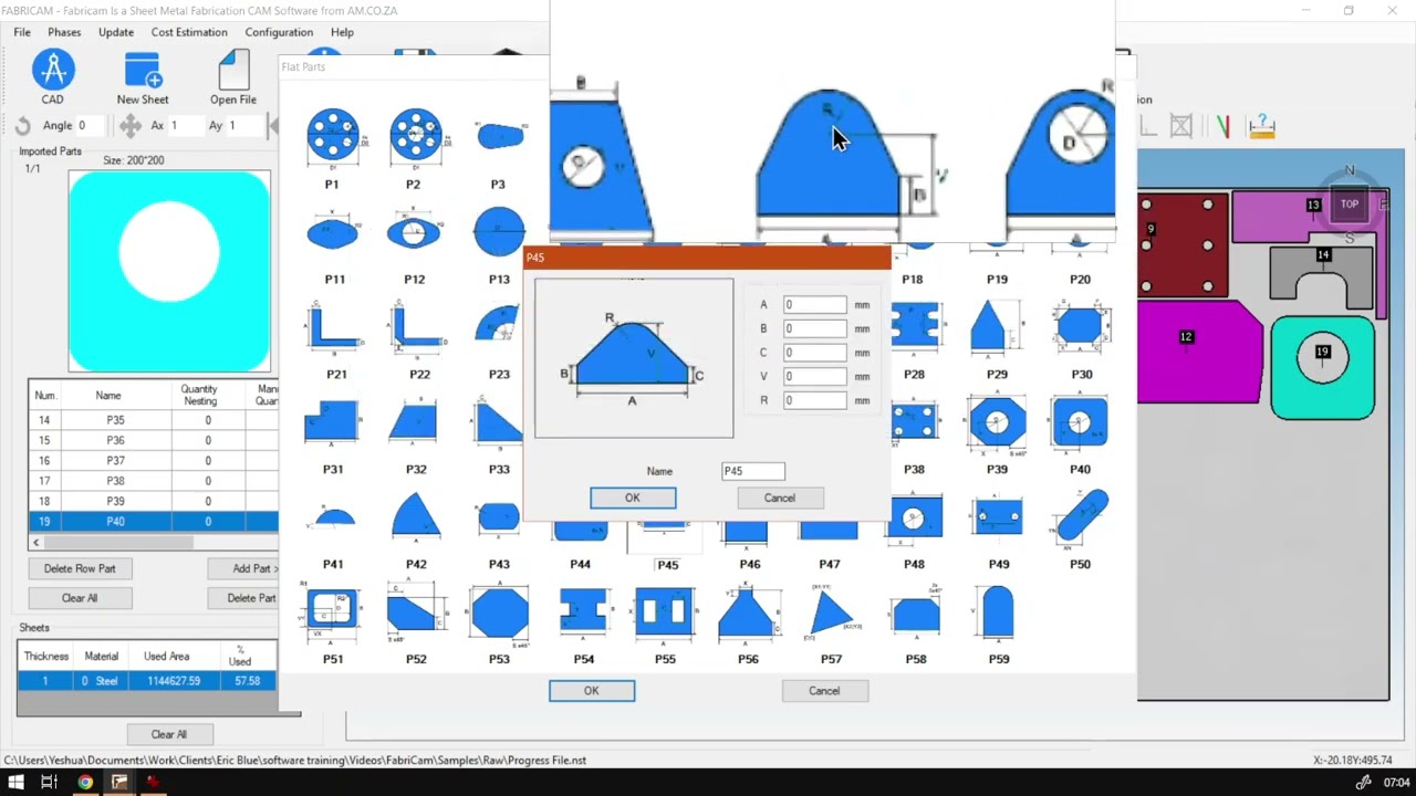 How are you guys? In today's video? We're gonna be looking at part number 45 from our advanced flat parts. But before that, let's have a quick intro first, so today's video can be found on softwaretraining.co.za. We make sure we need to watch problem solving videos, and we also have daily updates. Otherwise, back into the programme here and now, today's part is gonna be pretty much say, advanced version of our part seven or part number seven from our intermediate parts. Now, this part's gonna have a nice little twists, which is gonna make the part quite interesting. Yeah, so let's head into it. I'm gonna go to flat part. Then we're gonna go to part. What is it? 57. I think I said I can't remember and let me just make the whole issue of 45 apologies. So go to apart 45 year and then we just zooming here with a preview. And then, as you guys can see, why at Harvard there to part seven, you can see it's a very similar shape. We've got the rounding, got the edges, and then we've got the width and height. So, yeah, you guys can see we've got the rounding. We've got the edges and then we've got the width and the height. Two things is gonna be key different here. Number one, the hike you can see to the top of the circle, where with Part seven it was to the centre of the rounding, so you can get a bit confusing calculating it, actually, with about seven. And the other thing, that's quite different. You'll notice that the sides as two different options we can set. So we've got a height for B and a height for C. So yeah, let's quickly jump into it and we have a look at it. So I'm gonna go 200 with, and then let's go to V E. I'm gonna make it. May be, but what? 1 80. And then let's go to our rounding, which is our at the bottom, uh, rounding. I'm gonna make about 50 and then, uh, let me look a bit smaller. Good 40. And then we've got here the B and C. So I would like to have two different sizes so we can see it for the tutorial. So, obviously make sure it is not higher than your height to just 1 50. I mean, 1 80. My apologies. So I'm gonna make this one. It's, like a bigger so I'm gonna make this. So I wanna make this side smaller, rather So I'm gonna go 30. And they would be. Every year we go, we try about 80. And there's preview. Let's see what it looks like. Okay, there we go. We've got a nice lopsided shape. It's gonna make sure if something so be Yeah, it's a bit confusing. I made my be larger. But how? My c is larger, so I'm not too sure what's happening there. Maybe they have it in reverse. Let's try change this around now. My Yeah, going to the preview This I should be beer smaller, but it should be the opposite now. Yeah, so I don't know. Maybe it's a little bug or the UI is just likely. Or the preview. I just likely wrong. We're not the preview, the preview dialogue here, but otherwise, I'm gonna leave this, as is. I'm gonna leave the name so you can reference back to it. Manual quantity one, and then we can add this to our canvas. Here we go. We've got P 45 covered tries to squeeze it to me in a corner. Uh, and then, uh, yeah, that is the 45. Like I said, the advanced version of P seven just to recap so we can set the corners in the I mean the side heights individually. And also, it's from the bottom to the top and not from the bottom to the centre of the surrounding, but yeah, Otherwise, we hedge softwaretraining.co.za. Today, guys will notice we've got a variety of different Softwares will recover. And you can also isolate your search on top of right. If you do not, however, find the training videos you're looking forward to simply go. Yeah, requested training, video filling in uniform. And then we'll do our best to try and make that for you. But otherwise thanks, guys, for watching and just, uh