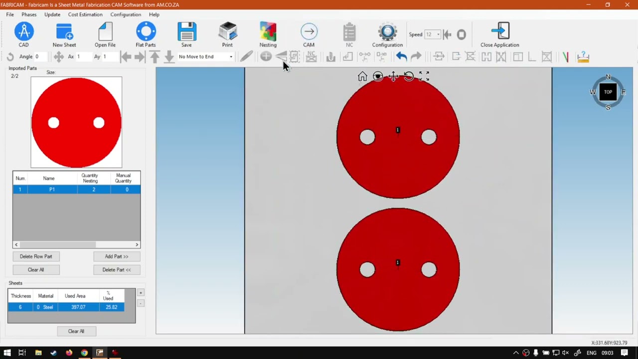 Alright, you guys in today's video on fabric Cam, we're gonna be looking at some cam settings for pre piercing. But before that, let's have a quick intro first. So today's video can be found on softwaretraining.co.za. And we make sure and easy to watch problem solving videos. And we also have daily updates. Otherwise, we're head back into the programme here. So like I mentioned today's video, we're gonna be looking at some cam settings for pre piercing. But in order to do that, I just wanna set up a quick few shapes. So I've got my basic sheet in now. I'm gonna go flat parts and just select a shape quick to add it. Take this 1 400. So the width 200 it's gonna be the distance between the holes in diameter of them of the I wanna make 50 unit, uh, degrees 1 80 then I'm gonna make two of them say, OK, there we go. I've got a basic shape. I'm just gonna add two of these and then say add quickly nest. These say OK, it's gonna move to the centre so we can have a bit more of a symmetrical view. Now, what you can do is if you go to Cam and we go in here, we can see currently it is taking a lead in and a lead out right on this line. Now, what you can do is add pre piercing. So if you want a little bit more of a cleaner finish, not always, but it can be the case. In order to do that, I'm gonna go here to configuration, go to the four tab, which is Cam, and then I'm gonna navigate down here on the right so we find the option for pre piercing. I'm gonna activate that and then say apply now, just keep in mind if we had to go to Cam now, it is still gonna look the same. So we actually have to decide what we want to pre pierce. So then with our cam or inside our cam, it's important. I'm gonna select our shape. Let's do that again. And then now you will see we have this option of here called Pre Piercing. So it's basically got a little bit piercing into a, uh, object. Now I'm gonna select that and then it's gonna give us the option of why do we want to hear now you can do the external contour as well, but for this case, I'm just gonna select the two internal ones. So you want to select that little selection box and you'll see it goes black there on the right and then select the next one as well. And then there we go. I got both. But now, because we have two shapes, let's apply this to all of them because otherwise, currently only apply it to that shape or with this setting on, I've already set it on. But by default, we will only do it to the first. So then what you wanna do is go to the top setting here, which is apply for all parts of the same shape to make sure that is active. And then we say OK, and now if we go back to our cam and then we zoom in here, we can see we've got this red little circle now over our entry. So that will pretty much then pre pierce a first and then move it into the actual cut for us. So it's a very convenient little feature to have and not to use. And that is pre here now, Yeah, it can be used in many different ways, but this is the most default and base way. So if you understand this, and then the others should be way more simple, but yeah, otherwise, if we head here to softwaretraining.co.za. You guys will notice we've got a variety of different Softwares we do cover. And you can also isolate your search on the top or right. If you do not, however, find the training videos you're looking for, just simply go. Yeah, request the training video, fill in the mini form and then we'll do our best to try and make that for you. But otherwise thanks, guys, for watching and cheers.