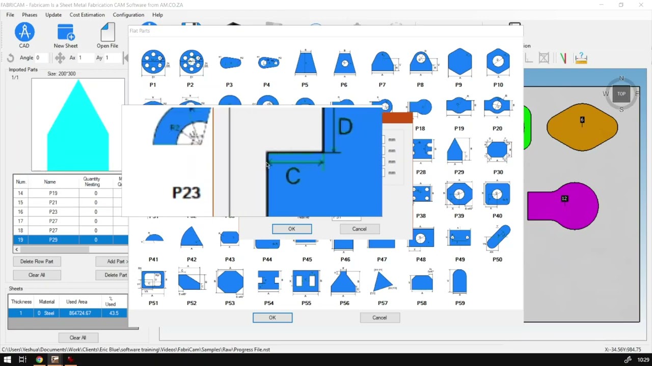 Hi there, guys. In today's video, we're gonna be looking at another intermediate part from our flat parts feature, and this will be P 31 or part 31. But before that, let's have a quick intro first, so today's video can be found on softwaretraining.co.za z. Do we make sure that you need to watch problem solving videos and we also have daily updates? Otherwise, if we head back into the programme here now today's shape, um, you can basically see it as two rectangles mixed. It is a little bit more advanced shape, but I'm not that much. So now, in order to do that, let's go to flat parts. Then we go to p 31 year. If I open this and we preview the little, uh, preview box, we can see here we've got four different values. The most important ones is the A and B. This will always set within the height of the shape. And then we've got C and D were sure creators a little cutaway corner in the one side of it. So, yeah, in many ways, you can almost see this as a reverse of perhaps the P 21 to zoom in here. But instead of setting these values, we're gonna be setting the inside. So it's it's a very similar just in reverse. You can say so now. Obviously, you do not want C and D to be bigger or larger than A and B, Otherwise you're gonna run into a little problem. And then, yeah, we want to make sure A and B is our primary ones. So let's go. I'm gonna just sit in a few so you've got 300 200 then let's maybe make one, see about 50 and then I'm gonna make 100. Leave the name of Sam, and it's quickly preview it. We can see we've got a little step out here now. Obviously, you can adjust this even more extreme if you want it. So let's say we wanted our c a bit larger. So the sea and a keep in mind that you see do not want to be larger than a haze 300. So I'm gonna make it quite large just for a test. So let's go to 80 and then d we don't go bigger than 200 so Let's go 100. And for about 70 se. Okay, as you can see now, we've got a little reverse of the other shape we're talking about. I'm gonna go manual qualities, one add it, and then we can add this shape to our canvas somewhere. Now, I'm just gonna quickly rearrange some of these shapes with them a little bit more snugly and then sort of squeezing this one so we can save some space. There we go. So that is our leader shape. Like I said, in many ways, it's the reverse of the one that you can consider the owl. It's just instead of setting, the outer edges are gonna be setting the inner edges. But yeah, otherwise, that is it on the shape before we go to softwaretraining.co.za z. You guys will notice we've got a variety of different software to recover, and you can also isolate. You're searching on the top of right. If you do not, however, find the training videos, you looking forward to something So yeah, request the training video fell in the uniform. And then we'll do our best to try and make it for you, but otherwise thanks, guys, for watching and, uh