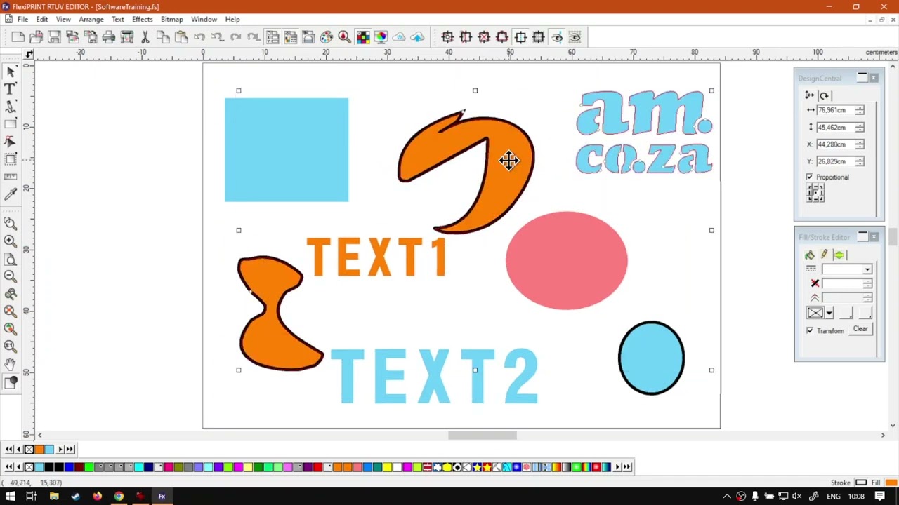 Alright, guys, In today's video, we're gonna be looking at the selection Section two with in flexi print. But before that, let's have a quick intro first. So today's video can be found on softwaretraining.co.za. co dot Z A. We make short and easy to watch problem solving videos, and we also have daily updates. Now, if we get into the programme here. So like I mentioned in the intro, it's gonna be our second section to the selection, uh, mini series. And then now we're gonna go into a little bit more advanced options, But, uh, it's pretty simple to use. So, uh, the previous video we looked at, the more standard ways that we make selections, box selections and so forth. Now we're gonna be looking at some of the other attributes under our selection options. So, as you can see here, we've got quite a range of different things. We've got text. We've got, uh, circles, spheres, ellipses. We've got, uh, rectangle, got some path tools, and then we also have different colours. We've got some strokes, some without strokes. So let's look at the first option. Which, uh, if we had to go right, click on any shape or any, uh, object. Then you will see we have the selection tool at the bottom. If we had to, right, click on the white space. You will see it's not there. So just keep that in mind. So select whatever you wanna select similar or whatever of we select that shape. We right, click when you go to select and you see, we've got these two at the bottom. So top one is select similar objects which in this case, if it had to be a rectangle, it will only stay this. So just keep that in mind. So let's take the circle. Perhaps we got right click select Select similar objects. Now you can see both, uh, circles are selected, so this can save you a lot of time, depending on the type of design. Now, same with the text. If we had to go right, click. Select. Select some of the objects you'll see, but the text is selected. But you might have noticed that the top text is not selected, and that is because that is actually a path. It's designed with a certain text and then convert it to a path. So if I select this path, go select or right click Select Select Similar Path. Now you'll see our actual logo AM dot TL zero logo is selected, so keep that in mind then the next option we have is the select by colour. So let's say I wanna select everything of a similar colour. I can select the shape right click, select and then we go to select similar colour. And then it will obviously do just that. And then anything that's got that same colour on it will select it. And that's very handy. Like in this scenario, you can see, uh, we've got a lot of things between other things. So this is a quick way of just quickly making a selection without having to select and deselect shapes and so forth. Now, obviously, we have one more. If you add to right click here, you will not find it. Then that is select by attribute. So in order to find that what we wanna do is go to our main menu on top, go to edit, and then we go down to select and then under select, you will see here select by attributes and the short of that D. So let's try that. I'm gonna D open it. Put it here on the side and you can see we have a few different options to look at on top here. We've got some tabs. Object, full stroke effect, then, uh, show. Uh, we've got some options there, but I mean, in general, these ones just leave them a default. And under here, we've got some shapes, so you can see we can select everything by the same shape oval. So it's pretty much what we did before, But now you can see we also have paths. So anything with a path, let's say we grab this. Say, OK then only the shapes with a path. Will it select? I mean, we've covered that. That's not actually what I want to show. I want to show you the stroke, and then we go here to the third tab. You can choose here, the black stroke, say OK. And now only the things where the actual stroke is selected. So that's the beauty of this tool. It can go kind of behind just to select by object or, um, colour. And you can also you can see we've got groups here. We've got stuff at compound. And then, like I said, we're gonna do the full fill type, which is almost like just selecting what colour, But, uh, yeah, but the beauty is we have a stroke and then we can sort of isolating. We've got effects and so forth. So this one, definitely You need to play around with a bit, but it's pretty easy to understand. It is just to remember it is there So just D on your keyboard very easy to get Oh, you go it select select by attributes. And I will open that for you. But yeah, otherwise that is it. On our second section in the meanwhile, though, if we head here to softwaretraining.co.za. co dot Z a you guys will notice We've got a variety of different Softwares we do cover, and you can also isolate your search here on the top, right? If you do not, however, find the training videos you're looking for, just simply go here, request the training video, fill in the mini form and then we'll do our basic. I make that for you, but otherwise thanks guys, for watching and cheers