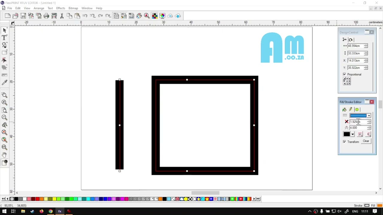 Alright, guys, in today's video, we're gonna be having an in depth look at the stroke feature within flexi print. But before that, let's have a quick intro first. So today's video can be found on softwaretraining.co.za. co dot Z A. We make sure need to watch problem solving videos, and we also have updated updates. Otherwise, we're getting into the programme here now. Like I mentioned in today's video, we're gonna be looking at the or more in depth at the actual strokes. So what I've got over here, I've got a basic square stroke and a path stroke just so you can see the variation on both of them. I have grouped these together, so if I change one, they both will change. So in case you're wondering what's happening that, uh would make a little bit more sense to, um, yeah, so you know what? Why? It's actually affecting both. But in any case, so now if we had to go, I'm gonna select this. Make sure our fill and stroke editor is open. Otherwise it's pointless going to the depth into depth with this full and stroke or the actual stroke, and to locate it, we can go here on our main toolbar, second icon next to the undo and redo buttons. And that will be our full and stroke. And as you can see, the hot key for that is I. So now what I'm gonna do on our actual film and stroke editor, I'm gonna go to the second tab, which is our stroke. And here we have a V variation of options to look at. We're really briefly covered some of these, but, uh, now we're gonna go into more depth. So first of all, here, we've got our stroke style. So this is the area where you're gonna decide. What is your actual stroke look like? Is it little, uh, this can be great if you wanna make an area for let's say you wanna cut this out so you can actually show where. You know, there's many different variations of these that you can do. You can see here. Um, we've got some interesting ones to choose from now. Right at the bottom of this, you'll see there's also one called edit. Now, if I had to click this, we'll open up a dialogue box and then, um, we can choose uh, how we wanna change this. Now it will use the last one. You were selected when you edit, but, uh, what I'm gonna do is quickly just run through these settings. So you get an idea of what's what. And then, um, we will try to use that. So now over here, we've got as you can see, a dash gap dash gap, dash, gap. So there's six of these values, and what happens is once it gets to the last one, it's gonna repeat back to the first one. So what this allows us to do is we can set the size or the length of a dash. Then how big is the gap, then a dash, then a gap, then a dash. So if we had to make all these equal, let's say we go. Yeah, let's go. One, 11111. Uh, there we go. And I can say update, Then on top Here, you should see it update. So now we can see this is currently what our stroke is gonna be looking like. It is just the classic, uh, almost like the marching ants. You know, the layout, then what? We can do is let's say we make our gaps bigger. Gonna go about 333 click Update And now we can see we've got a bigger gap between So this is great if you wanna make a custom, uh, setups Now, obviously, you can also make this more asymmetrical in the sense of it's not where currently we have equal dashes and equal gaps. Now let's say I make the first gap one, make this 14, and then make this 11 again. So now one of these gaps are gonna be and not equal to the race. So if I go update now, we can see we've got a little triplets here. Space again. Space again. Now likewise, We can do the same with our dashes. So let's take the middle one as well. Make this also for go update. Now, you see, we've got OK. That was not the middle. So the middle one would be probably the first one. But any case, So there we can see. We've got a unique, uh, stroke arriving here. Now, if you've set up something that you like and obviously just go add and then we should be able to choose it here from the list so we can actually get that. But I'm just gonna leave this for now at the stock standard. This is the basic one. Then our next option here, we've got the actual size of the or width of the stroke. So if we adjust this, you'll see our actual stroke changing there to a different width. Then, uh, under that, we've got the metre limit, and then we've got our colour. So under the colour, we can obviously go to select, um, all standard stuff there, then to the right of that, we've got our joint type, and it's not that close. So now if I had to click this, you can see at the moment our edges here is nice and square at the top one. Here, we can make it kind of like a bevel, So it's a cut away on the edges. Now, keep in mind, this will only be in corners, and so it's not affected with the end caps. So then the last one we have is round, and now we've got a nice round, smooth corners there and to the right of that, Now we have actual cap types. So the default it is set to on the node, it's gonna make a gap. As you can see there, it's only with the starting one. So to see the end, one will be round. So it's kind of like the open starting gap. This is how it will be looking. Then we have another one which is similar to the one. But instead of starting on the node, it's gonna have a kind of equal spacing around it. I can see it's closed it off nicely around and, you know, with equal spacing around this one. And then the last one we have here is the actual round one, which is the middle one. If you click this, you can see it rounds off our beginning so it looks similar to the end one. But yeah, then, um where obviously we can go Yeah, and clear the transform. And then we also have this one which is a a transform with objects. So what happens is this is deselected. And then let's say we scale this object and you will see the stroke will stay the same size. Now, if I had to select this on and I scale the object and then the stroke will increase as the object increase. So it's a handy one to know because it can b