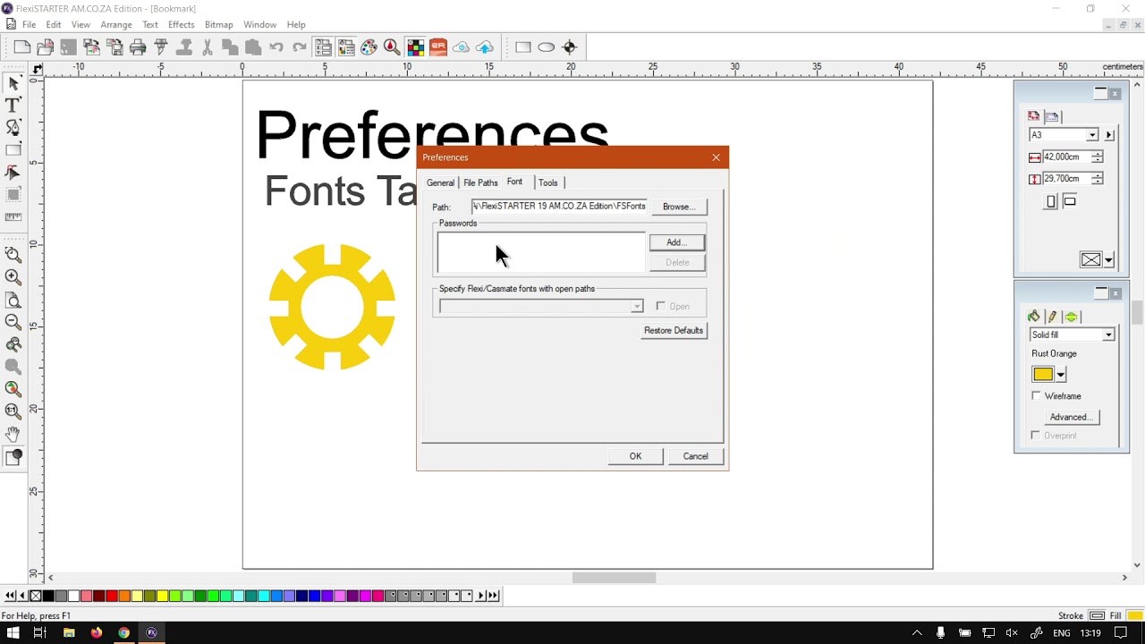 Hi there, guys. In today's video of Lexi Starter, we're gonna be looking at the font tab under the Programmes for Preferences. But before that, let's have a quick intro first, so today's video can be found on softwaretraining.co.za. Let's see a lot today you guys can navigate their to find, uh, different Softwares we cover. And also we upload training videos. They So you just go by there for any new content. Otherwise we're back in the programme. Yeah, now, just a reminder. This is a miniseries on the programmes preferences and today we'll be covering the phones tapped. So I will leave relevant links in the description. If you would like to follow along otherwise, to locate the preferences, we're gonna go to our main menu on top year and we navigate to edit and the edit. We're all the way to the bottom and preferences now under the preferences, we have a few tabs on top here. Like I mentioned covering the fonts today. We've already covered the general and the file parts around the fonts. There's, um, three main settings to look at. So first of all, it will be where your funds are located and keep in mind. This is not Windows Francis's flexi start of fonts. So it's different funds altogether. So then a defaults already by the right location. If you have any fault activated or you have passwords for them, you can always go here to add popping up this box, and you add the passwords for the funds you're looking for. You can also select the passwords. We have one and keep the legs. I currently don't have any installed here. Another thing you can do is you can make a path open and for any of you that you, um like, you know, when you're when you're cutting edges and stuff like that, you'll kind of know what opened parts of four. It's quite a outlines and so forth. It's not a very common path to find or fund to find, but it's nice that he started allows you to be able to turn fun into open parts. So what you'll do, basically you'll go from the drop down list. Select the right front you want, and then you just click this open button and it will turn it into an open path for you then. But let's say you've set up stuff and now you're having problems or so forth. You always got to restore defaults, and we'll set everything back to default for you. And it's just another note on the open parts. Keep keep in mind. If you did set it, you're gonna have to restart your programme. So then you actually go, okay? And just quit it and go back in. Otherwise, that is their phones tapped. If we head here to the training today, uh, video is available here. And like I mentioned the intro, we have a variety of different Softwares we did cover. If you did not want to go through the list of videos and try and find what you're looking for, you can always just go into search option. Isolate, just searches. Click here or typing something and magnifying glass. Then it will try to locate a few. It still runs dry. You can always go here to request a training video. They know we will make that video for you. Otherwise, thanks, guys. For watching and cheers.