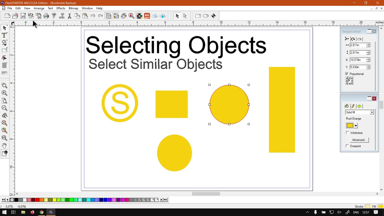 Hi guys. In today's video of Lexi Starter, we're gonna be looking at a tool on how to select similar objects within flexi started. But before that, let's have a quick intro first. Uh, mhm, yes. So today's video can be found on softwaretraining.co.za. We make sure that easy to watch problem solving videos, and we do have daily updates, so just keep an eye there for the new content. Otherwise, we go back here to the programme. Now, just a reminder. This is a miniseries on selecting objects. We've already covered a few different methods and today we're gonna be looking at how can you select similar shapes quickly? So now, yeah, also leave for aluminium links in the description so you guys can follow along. But then, like with any other selection tool or at least most selection methods, you're gonna have to have your selection tool selected, which is here on your main toolbar so you can see there. The shortcut for that is eight. So with that selected, you can select object. I'll select this rectangle and what you can do is you got your main menu on top to edit, and then we navigate down till we find select, and they will navigate till we find select similar objects. So when we click this, you can see it is as selected both as rectangles for us. I Likewise, where to select the circle that you edit. We navigate to select and we go select similar objects and you'll see it selected these two and the outline for our little s logo there, which is pretty nice as recognise that as a circle as well. But, you know, if you're like me, you know, that's a bit of a you know, it takes a lot of time having to constantly navigate your main menu on top so we can also do to speed up things. If you have an object selected, you can always right click it, go to the bottom, then you go select similar objects. Now you'll see it selected both attacks plus the S for us. So this is definitely a quick way to go about. So just to recap, make sure your selection tool is selected. Select your object. You want to select similar objects to you can just right click select select objects. Otherwise, that is it on selecting similar objects we had here to softwaretraining.co.za. We have a variety of different software to cover and also we have this nice little search options so you can actually isolate your search. And then for some reason, you do not find what you're looking for. You can always go. You requested training video well in the mini form. And then we will make a video for you. But otherwise thanks, guys, for watching and cheers.