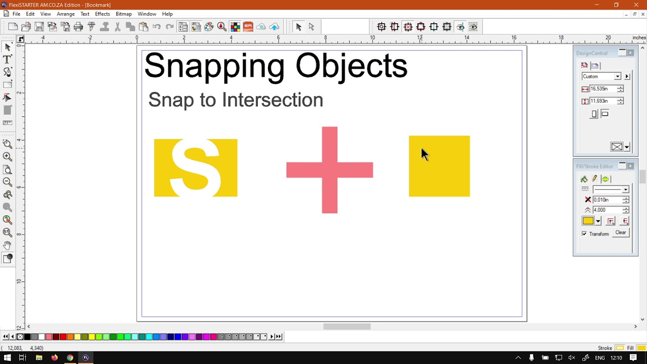 All right, guys. In today's video of Flexi Starter, we're gonna be looking at the snap the intersection option from the snap to. But before that, let's have a quick intro first so today's video can be found on softwaretraining.co.za. Got Seattle today? We make short and easy to watch problem solving videos, and we have daily updates. But otherwise back in the programme here. Now, just a reminder. This is a miniseries on snapping objects, and we've covered quite a few already. And, uh, today we're gonna be looking at the snap the intersection. We'll also leave relevant links and descriptions. You guys can actually follow along now. First of all, to locate your snapping will be under your view, but and then we want to navigate a refund Snap and then you'll see we have quite a few options here, as you can see that little blue block there on snap to intersection. It's already enabled, but click it again. It will disable it and also click the snap to bar. It will give you this toolbar all the relevant options as well, so you can just quickly use it quick navigation and snapping. So currently, as you can see houses on and it's the only one that's another. Only under the thing is our show grids. Okay, Sorry. Which is not Doesn't matter at the moment for snapping. So snap intersection on. What this will do is shapes and objects that you scale and that will snap to anywhere where to objects are into sex. So if we had to take this little plus, we've created scribe this corner and then we'll move it, uh, keeping shifting to, uh, not constrain the scaling you'll see here it snaps to this intersection Same to the top plus with a combined. But you'll see otherwise everywhere else. It's kind of trying to snap, but it's not quite finding the intersection of what? Once you get to these, you can see there is a definite snap. No. Likewise. If we had to make a duplicate of this, it's just going to change the colour of one. Yeah, sorry. That is my stroke. Let's go back to the full. That's great. Mhm. Let me make one more duplicates just so we can have something to snap to now the same way. If we had to scale this, you will see snaps it to everywhere with this thing into six. Currently at that point and that point. So yeah, that is the snap to intersection. It is a rather simple tool to use. Uh, yeah, next time we'll be looking at the snap to edge. But otherwise, if we had here to start with training .co.za. We've got a variety of different Softwares we do cover. And you can also isolate the search here on the top, right? If you do not, however, find what you're looking for, you always go. You requested training video and we will make that video for you Otherwise thanks, guys, for watching and cheers.
