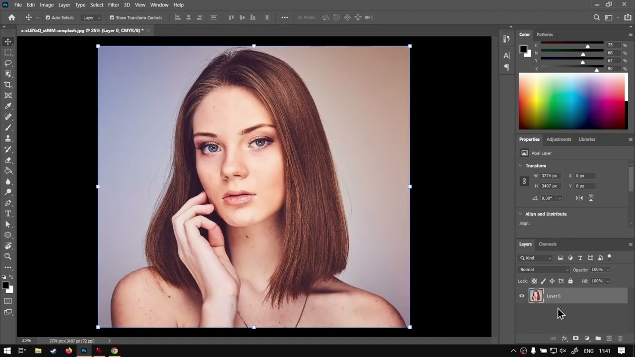 All right, guys, In today's video, we're gonna be looking at how we can remove the K Channel from our C N. Y. K. And this will be for or should I say, within Photoshop. But before that, let's have a quick intro first, so today's video can be found on softwaretraining.co.za. We make short and easy to watch problem solving videos, and we also have daily updates back into the programmer. Now, in the previous video, we looked at converting this image to C. M. Y K and also setting up our actual C M Y K channels. Now, in today's video, we're gonna be looking at actually getting to the, um, some of the most important parts of this whole thing and that is removing the K and putting a new fake K. You can say so. The first thing that I want to do is I want to go on an image in the background. I'm just gonna remove this little lock so it doesn't give us problems now, you might not have the same problem, but I'm gonna do that for now. Then next up, what I wanna do is. I wanna go to the actual channels, then select our Black Channel. So the one right at the bottom and then there's a few ways we can do it. We can use shortcut keys, so I'll show both. So the first way is we can go, um, control a just with our mouse ho it here, they will select everything. Then, with this one selected, I'm gonna go control C and that will make a copy of our black channel. And I'll move back to our layers, and then I'm gonna just control d to deselect everything or Sorry. Um, yeah, control d and then I'm gonna make a new layer here at the bottom. So I'm just gonna click that create a new layer, or what I can do is go control shift in That will give us an option for a new layer. Say OK and then control V or paste our black layer. So now pretty much we have the base and then we have the black layer another way. We can do this without shortcuts, so I'm going to remove that we go to our channels and then we go to, um uh I think it was. Let me just find out. Select. And then we wanna go all so you can see control A So we select everything with our black one selected. We wanna go here to edit, we say copy. Then I'm gonna go to layers, click new here at the bottom next to the dust bin, made a new layer, then go to edit and click paste there. So that's the process we took without shortcuts. So if you, um your shortcuts may be different, you can still follow along. Now, next thing I'm gonna do is I'm just gonna quickly rename this bottom layer to C. M y. And then I'm gonna rename the top one to K. Now, I'm gonna just hide the K for now so we can see what we're doing and make sure your c m y layer or the bottom layer is selected. Then I'm gonna go to channels and then I'm gonna select on the black layer. So only that's active now from our actual colour Swatch here on top, we wanna make sure the foreground is black and the background is white. So, um, if you if you want to do that, you can always click on this arrow to switch between the two and then with the one selected, you just adjust the dragon to the black. In my case, I'll press X. It will swap it, drag it to the white, and then make sure the black is the front. Now, with this layer selected, you can just go shift and back space and then it's gonna ask us to fill this layer and I'm gonna say with background colour So that will be our white Say OK, and then there we go. Now it has made it white for us, So there's no more k k will be invisible. So if I click here on C m Y k, you will see the black layer is no longer there. So make sure. Like I said, you must be selected on the bottom layer. Now what I can do is if I go to a colour picker, go here between a hand or fingers. I click that you can see our K currently is zero. If I zoom in there now to get the K back without it being real K, I mean we will still convert it and flatten it But for that we're gonna bring our K layer back. We select it and then we want to go to our actual blending mode and set this to multiply. Now, if we pop this in and out, you can see it goes quite a bit darker. But, um, at the moment we are not relying on the K, we will still convert it. So at the moment, if you however, use your colour dropper on this area, you're still gonna find K, as you can see there. But we will sort that out in a little bit. At the moment, we've got about 18 K, but we will sort that in the next video because we just want to make a few adjustments just to, um, make sure this image pops a little bit more because at the moment it's still a little bit flat compared to the original. And, uh, you can go like this. It looks great, but with slight adjustments, we can really make this one pop, but that we will do in the next video otherwise, in the meanwhile, though, before we get there, If we head here to softwaretraining.co.za You guys will notice. We've got a variety of different Softwares we do cover. And you can also isolate your search on the top or right. If you do not, however, find the training videos you're looking for, just simply go. Yeah, request the training video, fill in the mini form and then we'll do our best to try and make that for you. But otherwise thanks, guys, for watching and cheers.