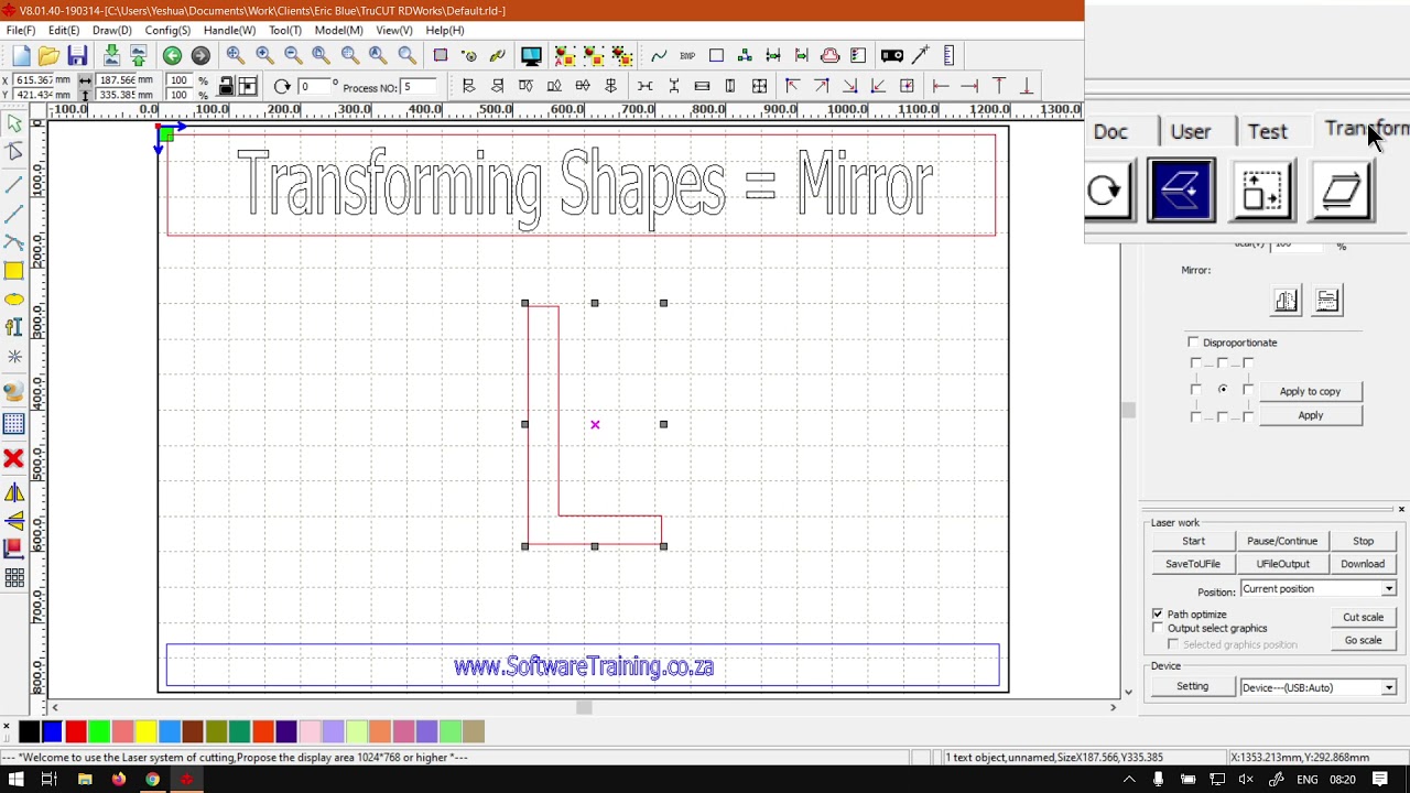 Hi guys. In today's video, we're gonna be looking at how to mirror shapes and objects within. True Cut already works, but before that, let's have a big interest. So today's video can be found on softwaretraining.co.za. Got Seattle today? We make sure that easy to watch problem solving videos, and we also have daily updates. Otherwise, back on the programme here now, just a quick reminder. This is a miniseries on the transforming shapes we've already covered. I think just about everything except for mirror or mirroring. So then I will also leave relevant links in the description so you guys can actually follow along when it comes to Marine. Obviously, the first thing you want to do is make sure you have a shape selected. You can either select. Just use your selection tool on top here and drag a selection box around the borders of your shape. If it does not go right around, it will not select it just something to keep in mind. Or you can simply just click on your shape and make sure it's on one of the outlines. Click on the inside. Nothing's gonna. So with your shape selected, we have a few ways we can go around mirroring Now we've got our first way, which is gonna draw boy on the left. Maybe there was a simple way because the bottom here, you guys can see we've got mirror or horror mirror and worth medical, obviously for horizontal mirror, vertical man. And then another way, we can do this. We go on top to our draw ball and I made menu or draw manager, I'd rather say never go down and then we can also find those two years. Then last year we can do this. We go to our system work plate, which is a penalty on the right, also known as your control panel Go to transform, which is the last tab. And then we go here to the middle one where you can situation. But you also see a option for mirror. Likewise, we have mirror for horizontal and vertical, obviously horizontal or just mirrored on the horizontal plane and the vertical will do it on the vertical place. So this is quite a handy tool. Often simply use it. Let's say you've got a word then, uh, maybe make a copy of it. Usually be all caps, then you're admire it so and then you put some form of fate, obviously a laser cutting programme. But you can get that idea of like, a mirror and the water or something like that. You fight this out into it. So you might have seen that a lot. And sometimes also creating a shape. And you want more of a symmetrical feel you always duplicated, mirrored on the horizontal plane. And then okay, there's a real line and you have something more symmetrical. But yeah, that is it. On marine shapes, we had to head here to softwaretraining.co.za. Guys don't notice. We've got a variety of different software to cover, and also you can isolate the search on the top of right. If you do not, however, find the videos. You're looking for Jessica here. Request the training video. Then we will make that video for you. But otherwise thanks, guys, for watching and chills