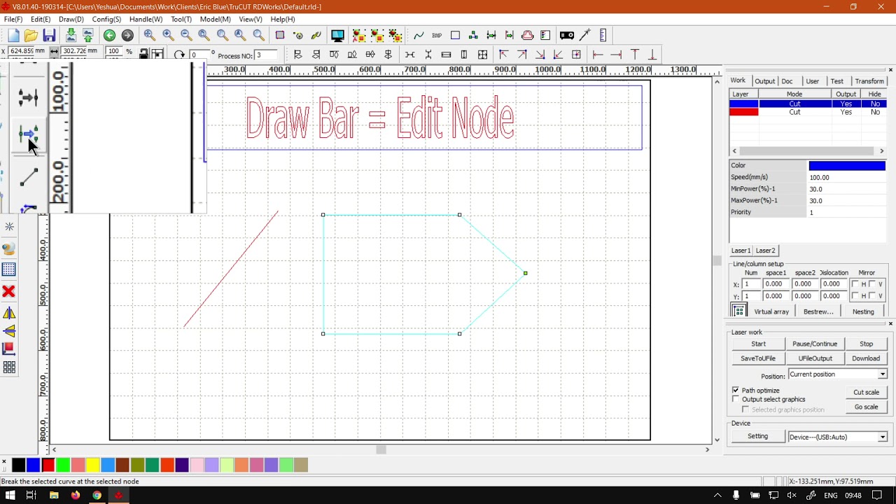 TruCUT RDWorks the Node Editing Draw Bar Tool (Part 2) the Tool Draw Bar Mini-Series