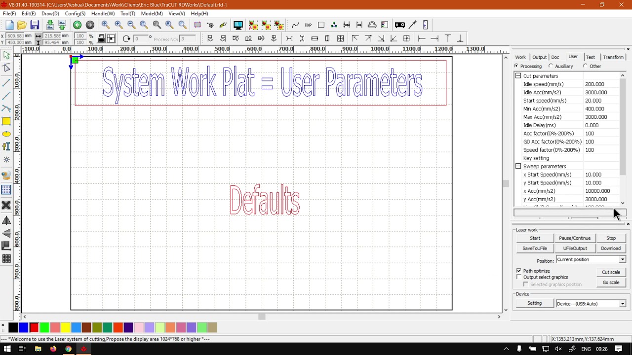 TruCUT RDWorks System Work Plat User Parameters Tab (Part 7) System Work Plate Mini-Series