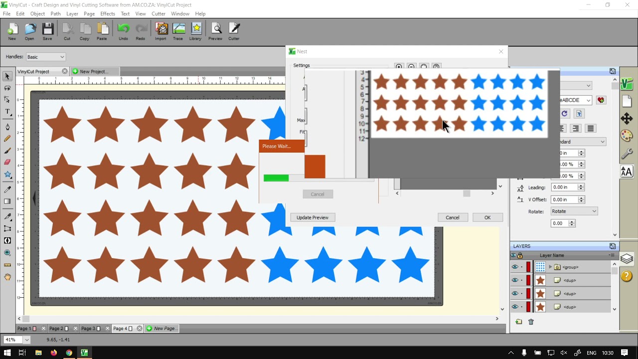 hi guys. In today's video while cut, we're gonna be looking at the next feature. But before that, let's have a quick intro first. Yeah, so today's video Can we find a softwaretraining.co.za hat you guys will notice? We have a variety of different software suite to cover, and also we are blood training videos daily so you can just keep my there for the new content. Otherwise, we're back in the programme here. Now. This will be a mini serious on nesting as there's quite a few things to cover. So in this first video we'll be looking at the overview of the settings. And then in the next video, we'll try a practical or two to demonstrate that in a real scenario, then, um, also I will leave links relevant links so you can follow along. Now when it comes to nesting, let's go to a new page. Basically, what it will do is, let's say you've got a design that you want to mass produced. Could be a card or Christmas type cut out or anything like that, and you want to fit as many as you can onto the cut area so that obviously you can, uh, save resources and get Max amount out. So that is what the nesting venture will basically do for you. Now there's a few things we need to cover. So first of all, let's, uh we get to the nesting effect. Obviously, under your main menu will be going to affect, and we navigate down to nest and you will notice is one of those few ones We don't actually need something selected to use it, But it also works if you do have things selected. So under its options here, I'm just gonna fit this whole starts to fit our preview. We have a few settings here. So first of all on the settings, we've got area with Ariel height. So this will be and the size of your canvas. In my case, my digital match and then also the size of your math is going to be going through the colour. So let's say you not using the same size as your actual digital canvas, then you can always just adjust this accordingly, and I'll try and fit that onto the size to the left and then next up here, we've got spacing, so this will be the space between these shapes. So obviously, if I let me just zero these And if you're spacing is too high, I'll give you an error because it cannot fit outside the border, which I think will do at the moment. So if I go up there and leave it on default, as you can see, it has brought all your shapes closer to each other. But as you notice these shapes and then you can see now I see you are reacting different to these shapes. So, uh, in order to fix that, we need to go to another group. So if we select this on, then it will treat all our layers, as in grouped the moment you can see all our blues in the group and the other one's own groups and only affecting the Group one. So we got a new group update preview, and now we will see is trying to fit all of them, not as if they are in grouped. Another important thing to keep in mind with this feature. Whichever layers are in your layers panel on your cameras, even if it's hidden, it will try fit them in here unless you select only key ones and use this option Select only. So if you have text and all of that is gonna try fit all of that. So make sure if that is the case, go selection only and only select the shape you want to fit in. But as you can see here already, we've scored quite a lot of space just with sitting basically the spacing. We left it at default, and now we know how many more stars we can try to put into the design. Then next up here, we've got the max rotations. But keep in mind with the setting the how you said it, the more memory attacks and the longer it takes to render. But I'm just gonna set my mind to about 10. For now, Let's go update preview. And then now you can see it's trying to save even more space. This shape is a bit hard, so you'll have to really boost those rotations and then try to save some more space. But already, I mean, it's similar threshold with extra space, so you will definitely feel even more stars in there in a threshold. It's only mostly effective if your rotations are said Hi. So the lower the says the lower threshold it will have on the rotations and the higher the setting goes, the more effective we'll have on the rotation. So this basically is like a fine tuning for the irritation amount you got sick. So once again, as I repeat, the lower the number, the less affect the threshold as the higher the more tries to rotate. And then, yeah, that is the basics on the settings. Like I said in the next video, we'll be looking at some practical. It's obviously when you're done here, you can just click OK, and it will apply the effect to all your little shapes as we see here, Okay. And then otherwise, if we head here to, uh, programme is freely available here, just head to the downloads page. Otherwise, on the softwaretraining.co.za hat we have a variety of different soft pursuit to cover, like I mentioned in the intro. And also you can isolate your search on top here, I want you looking for in a little search button and then if you don't find what you're looking for, you can always just go here to request a training video. Then we will make that video for you. But otherwise thanks guys, for watching until next one shoots.